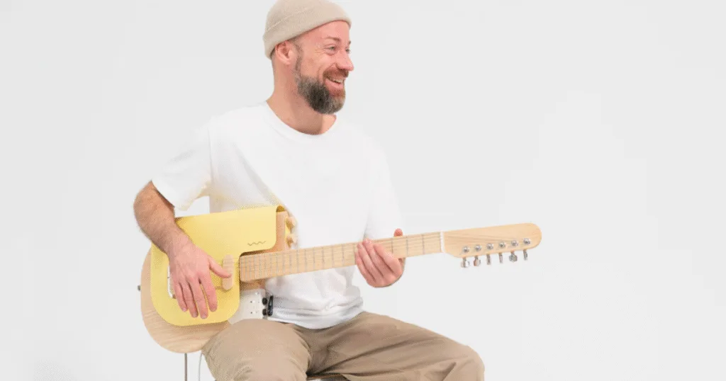 Apesar de parecer futurista, a Sine mantém elementos tradicionais, como o braço de madeira com acabamento clássico. Seu som é descrito como “amadeirado e aberto”, resultado de seu corpo “microfônico” que capta até ruídos do ambiente. “As pessoas me disseram que isso é ruim, mas vejo como uma qualidade”, diz o criador.