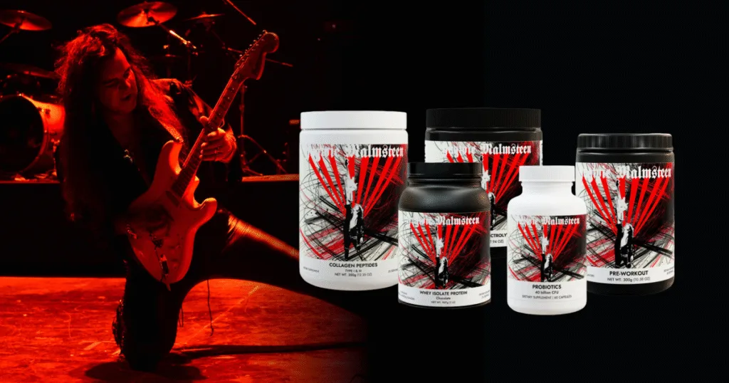 O que você pensaria se disséssemos que Yngwie Malmsteen agora também vende proteína em pó? Pois é exatamente isso que está acontecendo. O lendário guitarrista sueco decidiu turbinar sua marca com uma linha completa de suplementos de Yngwie Malmsteen, incluindo cápsulas probióticas, pré-treinos sabor melancia, eletrolíticos e até… tapetes de ioga.
