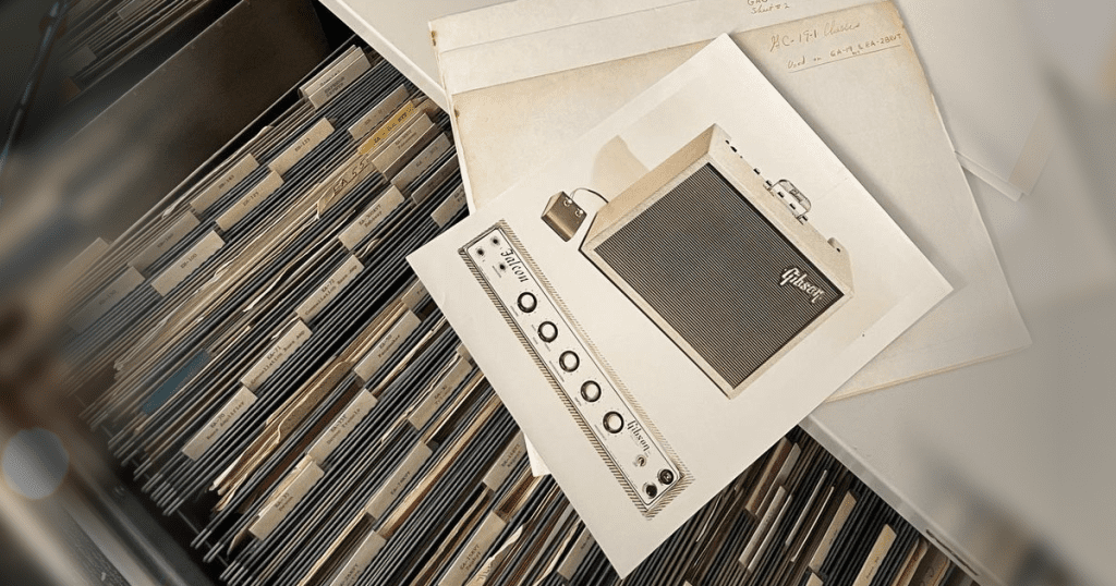 A Gibson encontrou uma enorme coleção de projetos, esquemas e manuais originais de amplificadores de guitarra e pedais de efeitos produzidos antes de 1970.