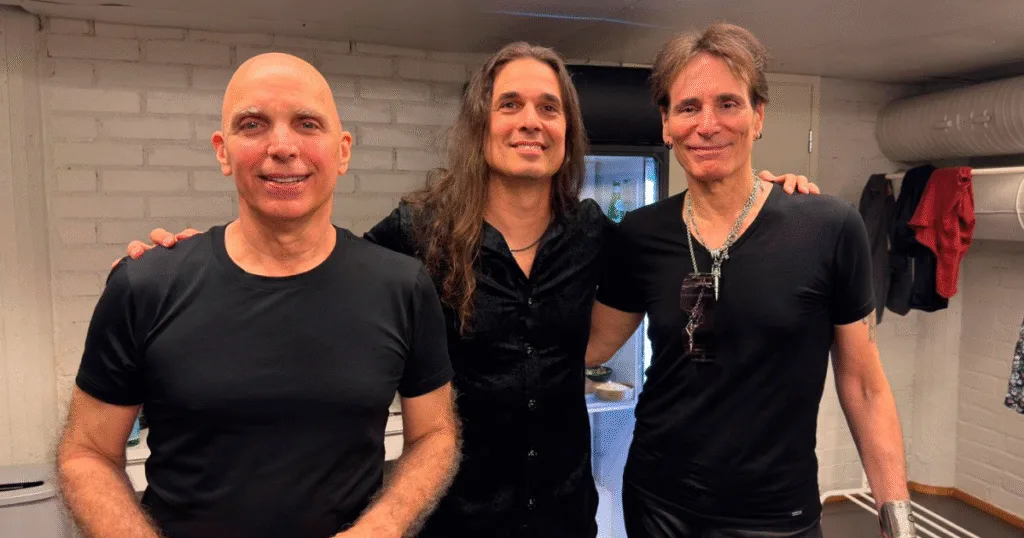 Kiko chegou horas antes para o soundcheck e foi recebido com entusiasmo por toda a equipe. Nos bastidores, trocou ideias com Satriani e Vai sobre música, família, vida saudável e projetos futuros — em uma conversa entre iguais, como ele mesmo define.