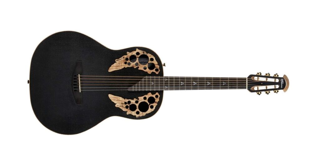 Em termos de hardware, acompanha o captador Ovation Custom Shop, com um pré-amplificador que tem uma saída direta ativa, bem como tarraxas Schaller na cor dourada.