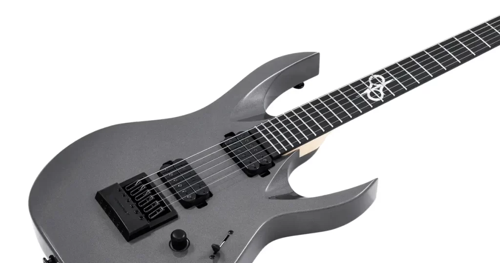 O instrumento apresenta corpo de alder, braço de cinco peças de maple e escala de richlite com 24 trastes de aço inoxidável. A pintura leva a cor Charcoal Metallic Gloss. Já as ferragens são pretas e incluem ponte Evertune e tarraxas com trava.