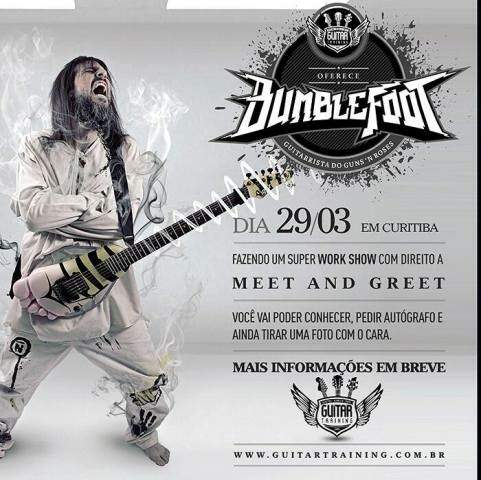 O guitarrista atual do Guns N’ Roses, Ron “Bumblefoot” Thal, confirmou por meio de sua página oficial no Facebook um workshow no Brasil. O evento ocorrerá no próximo dia 29, em Curitiba, no Paraná. Os participantes poderão ainda bater um papo com o cara.