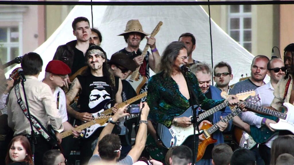 Quase 42 anos após sua morte, Jimi Hendrix ainda está quebrando recordes. Bem, mais ou menos. Ontem (1), no 10º festival “Thanks Jimi”, em Wroclaw, Polônia, mais de 7 mil guitarristas prestaram uma homenagem ao ícone da guitarra, tocando juntos a clássica canção “Hey Joe”. O feito estabeleceu um novo Recorde Mundial para o Guinness Book.