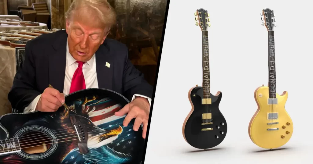 A Trump Guitars, marca de instrumentos endossada por Donald Trump, divulgou alterações em seus produtos e em seu site depois de receber uma notificação da Gibson — a ordem extrajudicial exigia a interrupção da produção de algumas guitarras baseadas no modelo Les Paul, cujos direitos pertencem à Gibson.